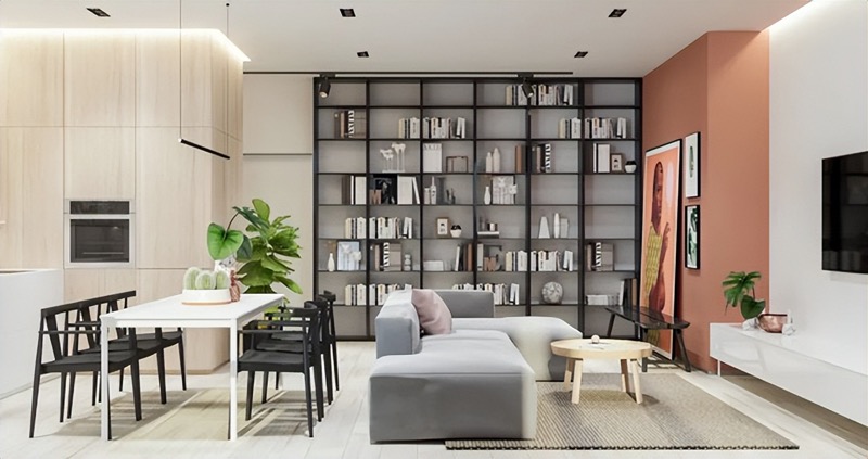 Dark shades can also make a room feel calm. Like this idea where the living and dining room feel so comfortable with shades of black, gray, and white.