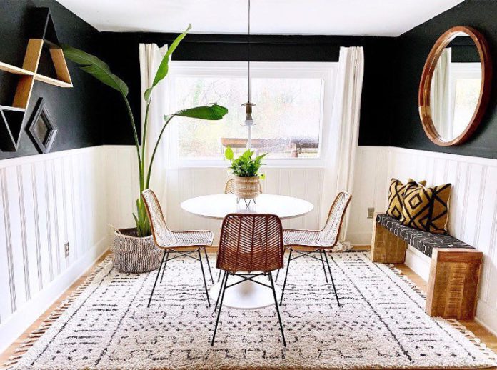 Minimalist design furniture makes the Boho small dining room seem simple. Some decorations are also minimized to give a calm sensation and a cleaner and neater appearance.